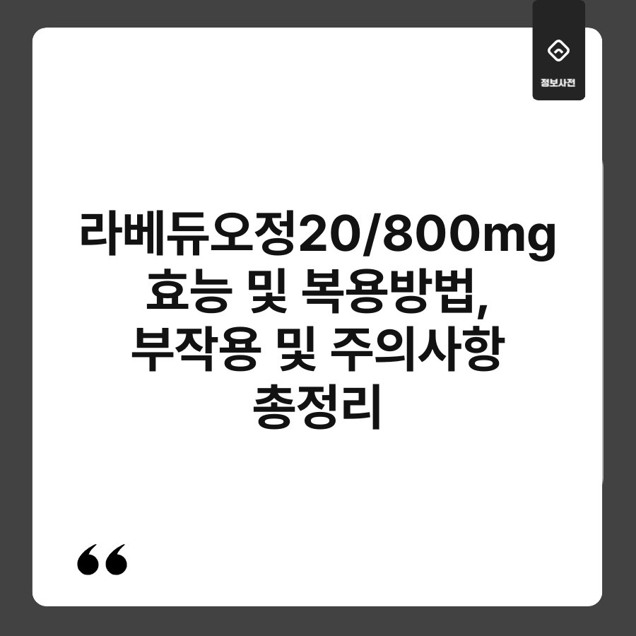 라베듀오정 20/800mg, 이 약에 대해 들어보셨나요? 많은 분들이 이 약의 효능과 복용 방법에 대해 궁금해 하실 텐데요. 특히, 어떻게 복용해야 좋을지, 혹시 부작용은 없는지 걱정하시는 분들도 많습니다. 오늘은 라베듀오정의 효능, 복용 방법, 부작용 및 주의사항까지 모든 정보를 총정리해 드리겠습니다. 이 글을 통해 여러분의 궁금증이 해소되길 바랍니다.