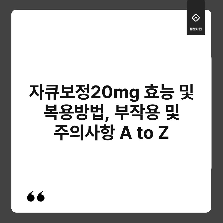 자큐보정 20mg, 들어보셨나요? 이 약물은 다양한 효능과 복용 방법으로 많은 사람들에게 알려져 있습니다. 하지만 부작용이나 주의사항에 대해서는 잘 모르시는 분들이 많을 텐데요. 오늘은 자큐보정 20mg의 효능, 복용 방법, 부작용 및 주의사항을 A to Z로 정리해보려고 합니다. 이 글을 통해 필요한 정보를 한눈에 쏙쏙 들어오게 전달해드릴게요.