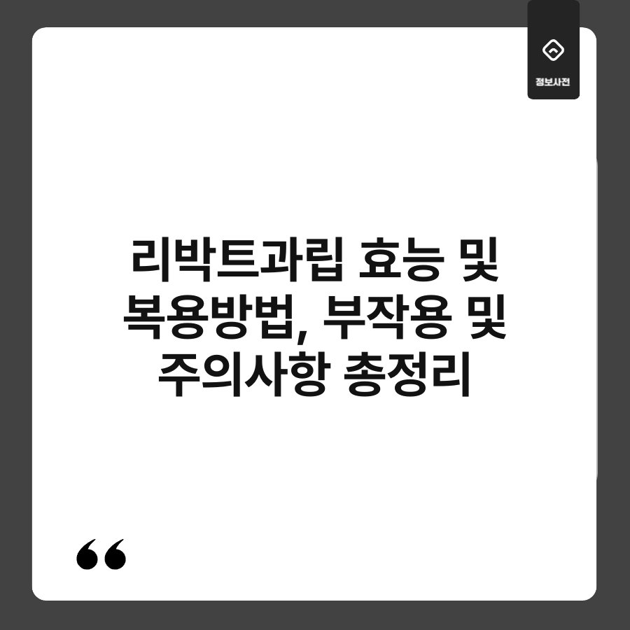 리박트과립, 들어보셨나요? 이 제품은 다양한 효능으로 많은 사람들에게 사랑받고 있습니다. 하지만 효능만큼이나 복용 방법과 부작용에 대한 이해도 필요합니다. 오늘은 리박트과립의 효능과 복용 방법, 그리고 주의해야 할 부작용까지 총정리해 보겠습니다. 읽으시면서 필요한 정보를 쏙쏙 챙겨가세요!