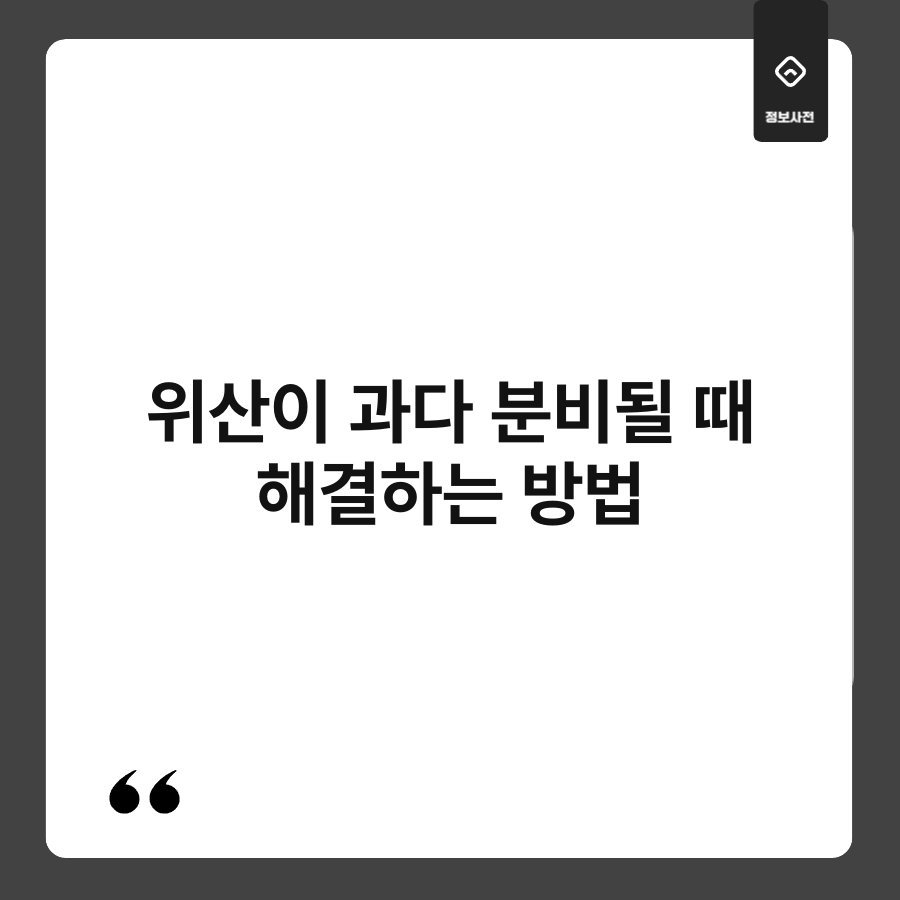 A1: 위산 과다의 증상으로는 속 쓰림, 소화 불량, 가슴 통증 등이 있습니다. 이러한 증상이 지속되면 전문가의 상담을 받는 것이 좋습니다.