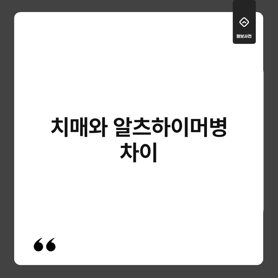 | 차이점 | 치매는 총칭, 알츠하이머병은 특정 질환 |