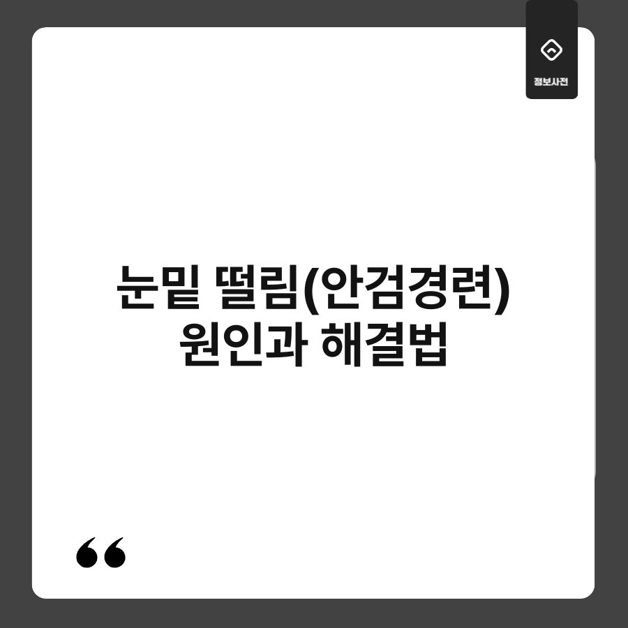 눈밑 떨림, 갑자기 발생해 당황스러운 경험이죠? 이 증상은 흔히 안검경련이라고 불리며, 많은 사람들이 겪는 문제입니다. 그렇다면 눈밑 떨림은 왜 생길까요? 다양한 원인이 있을 수 있는데요, 그에 따른 해결법도 함께 알아보겠습니다. 이 글을 통해 눈밑 떨림의 원인과 해결책을 알아보며, 건강한 눈을 유지하는 데 도움이 되길 바랍니다.