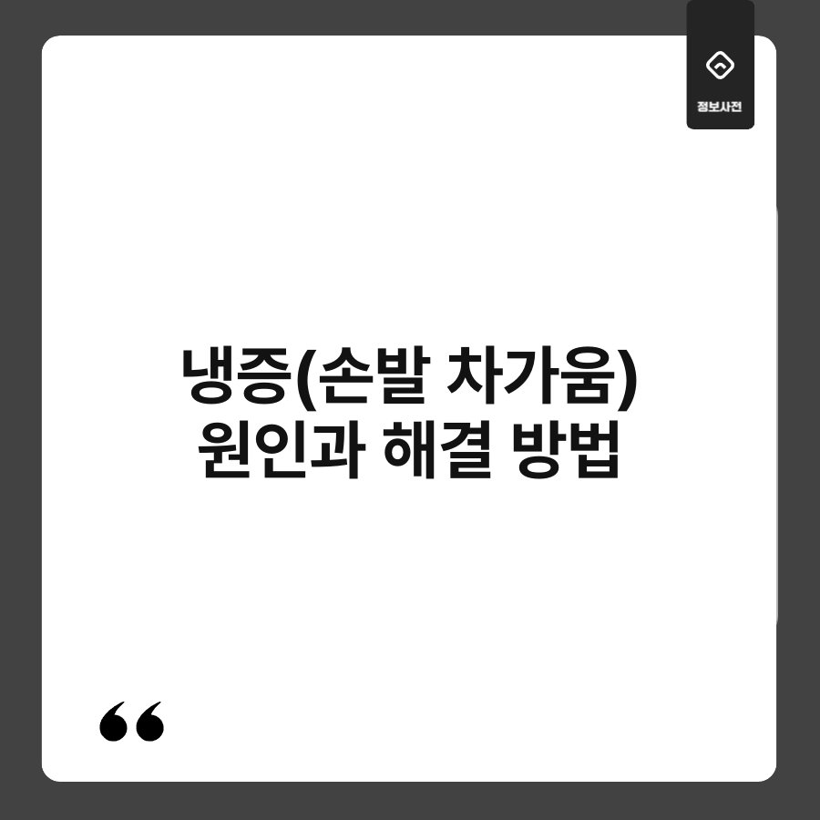 손발이 차가운 냉증, 누구나 한 번쯤 경험해 보셨을 겁니다. 특히 겨울철에는 더욱 심해지죠. 차가운 손발, 단순히 추위 때문이라고 생각할 수도 있지만, 그 이면에는 다양한 원인이 숨어 있습니다. 오늘은 이런 냉증의 원인과 해결 방법을 함께 살펴보도록 하겠습니다. 그러니 편안하게 읽어보세요!