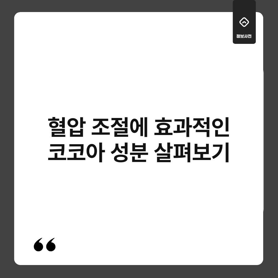 | 코코아의 주요 성분 | 플라바놀 성분이 혈관을 이완시켜 혈압을 낮추는데 도움을 줌 |