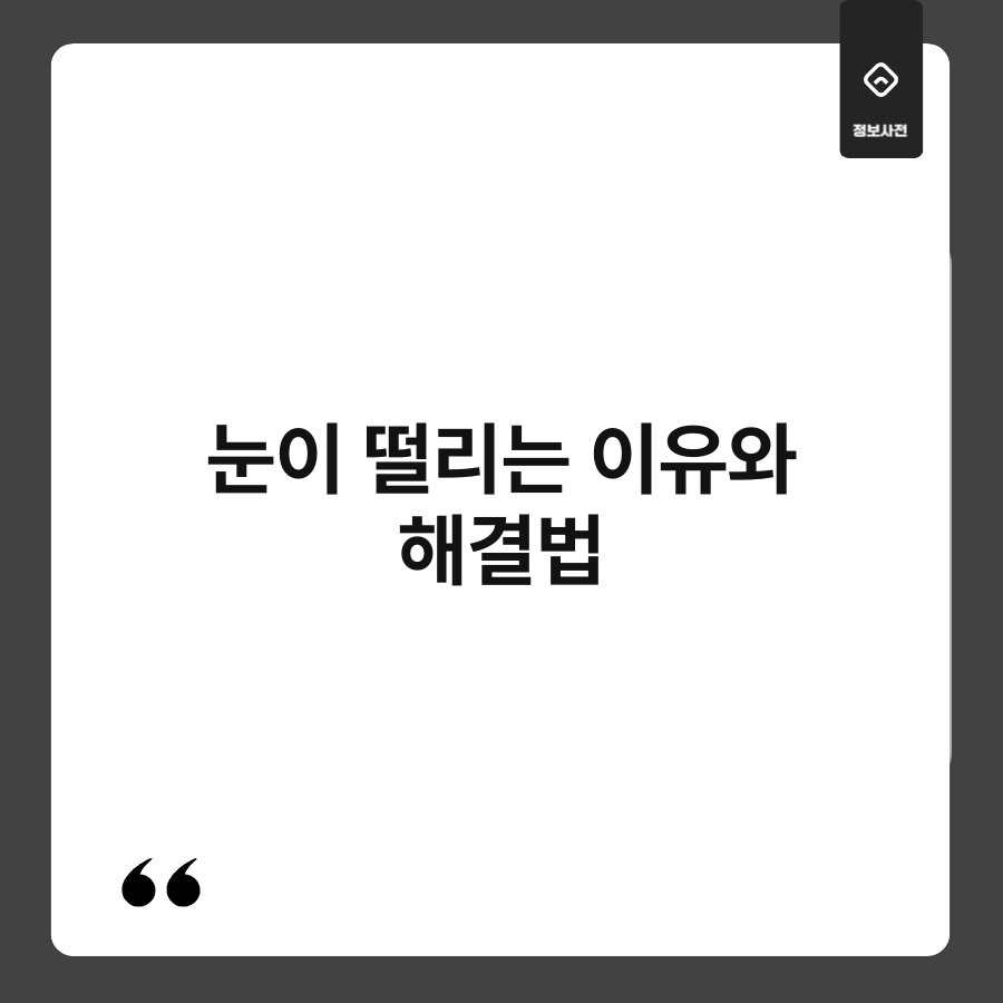눈이 떨리는 현상, 누구나 한 번쯤 경험해 보셨을 겁니다. 특히 중요한 순간이나 피곤할 때 더 자주 느껴지곤 하죠. 이런 증상은 단순히 불편함으로 끝나지 않고, 그 원인과 해결법을 알아두는 것이 중요합니다. 오늘은 눈이 떨리는 이유와 그에 대한 해결법을 알아보도록 하겠습니다. 이 글을 통해 실질적인 정보와 팁을 얻으실 수 있을 거예요.