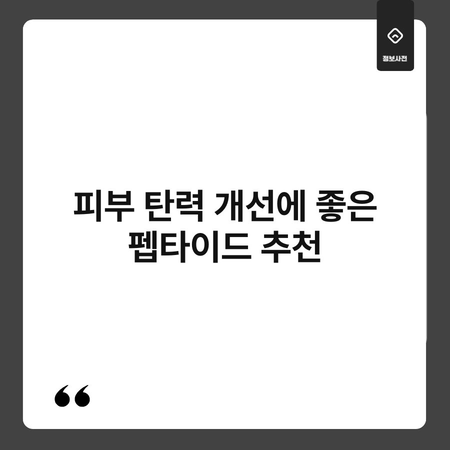 피부 탄력, 시간과 함께 사라지는 것이죠? 나이가 들면서 피부는 점점 더 늘어지고, 탄력을 잃어가게 되는데요. 하지만 걱정하지 마세요! 펩타이드는 피부 탄력 개선에 큰 도움을 줄 수 있습니다. 이 글에서는 피부 탄력 개선에 좋은 펩타이드 추천과 관련된 정보들을 정리해 보겠습니다. 함께 알아보시죠!