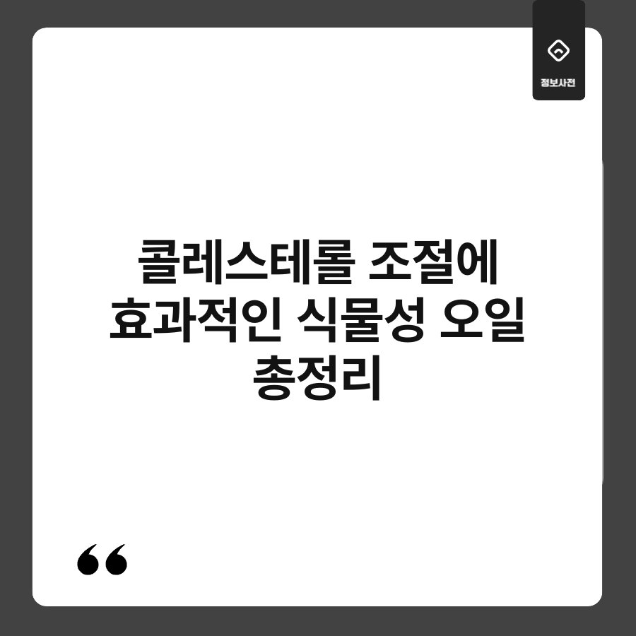 A1: 네, 다양한 식물성 오일은 콜레스테롤 조절에 긍정적인 영향을 미칩니다. 특히 불포화지방산이 풍부한 오일이 효과적입니다.