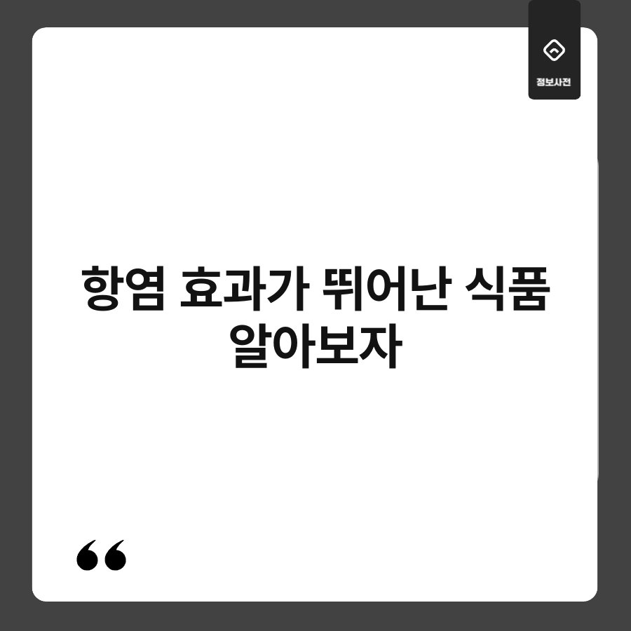 A1: 베리류, 브로콜리, 생선, 녹차, 마늘 등이 항염 효과가 뛰어난 식품입니다.