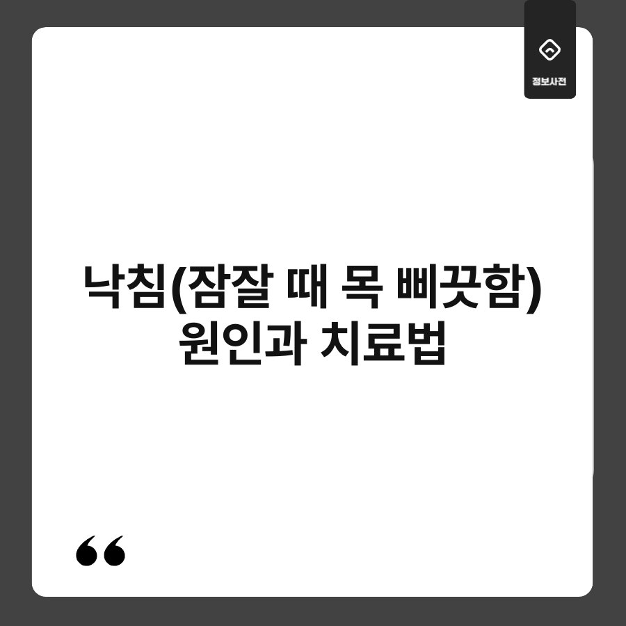낙침은 잠자는 동안 목을 잘못된 자세로 두어 목 근육이나 관절에 무리가 가해져 발생하는 통증입니다. 주로 아침에 일어났을 때 목이 뻣뻣해지고 고통스러운 느낌이 드는 경우가 많습니다. 이 상태는 목의 긴장과 통증을 유발하여 일상생활에 영향을 미칠 수 있습니다.