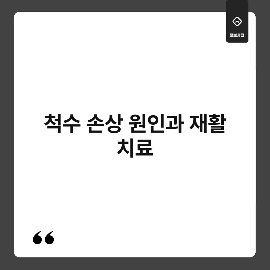 초기 치료는 빠르고 정확하게 이루어져야 합니다. 치료가 늦어질수록 회복 가능성이 낮아질 수 있죠. 따라서, 척수 손상이 의심되면 즉시 병원으로 가시는 것이 중요합니다.