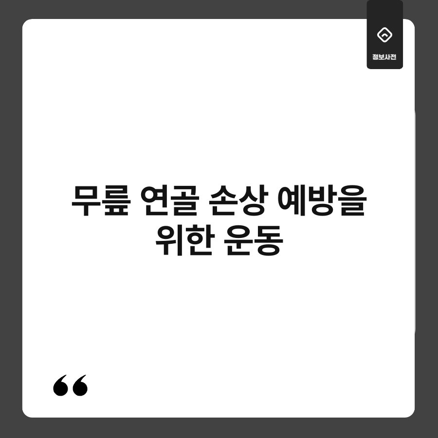 | 예방 필요성 | 무릎 연골 손상은 흔한 문제로 예방이 중요함 |