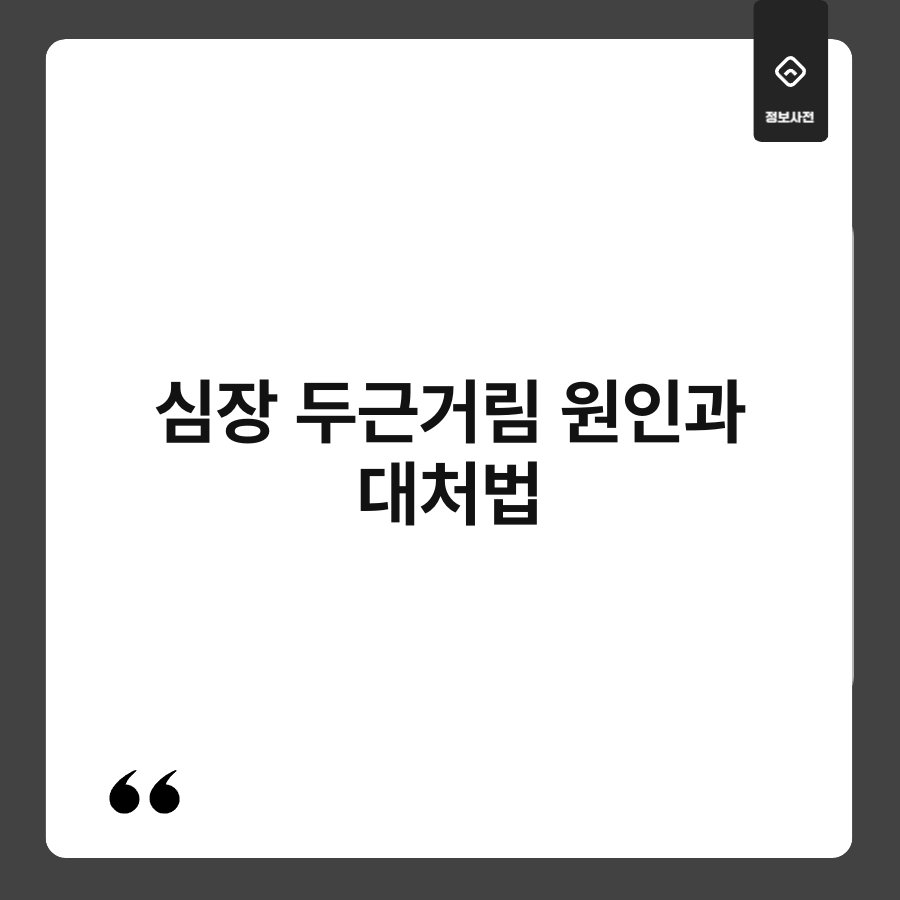 | 즉각적인 대처법 | 호흡법과 신체 활동을 통해 심장을 안정시킬 수 있습니다. |