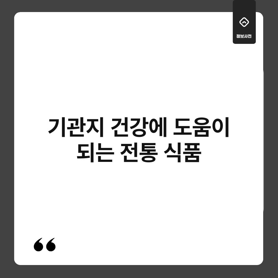 A1: 꿀, 생강, 대추, 유자차, 마늘 등이 기관지 건강에 좋은 전통 식품입니다.