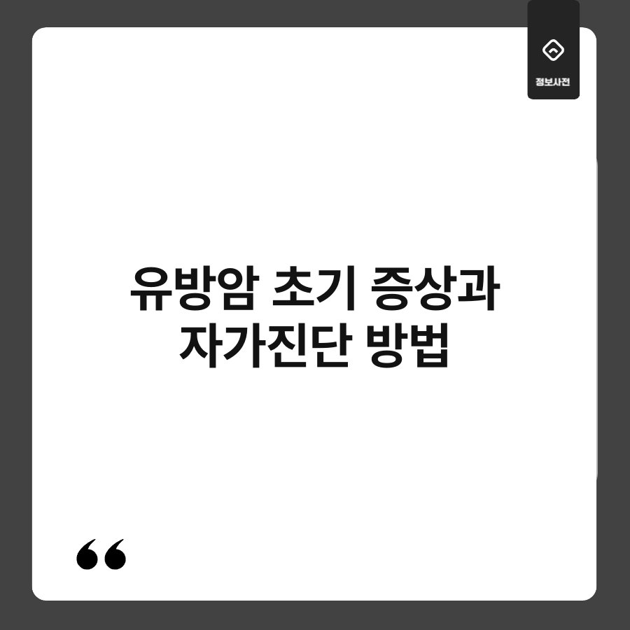 유방암, 초기에는 증상이 거의 없는 경우가 많습니다. 하지만 조기 발견이 생존율을 높이는 데 큰 역할을 한다는 사실, 알고 계신가요? 오늘은 유방암 초기 증상과 자가진단 방법에 대해 알아보도록 하겠습니다. 이러한 정보는 여러분의 건강을 지키는 데 도움이 될 것입니다. 꼭 끝까지 읽어보세요!