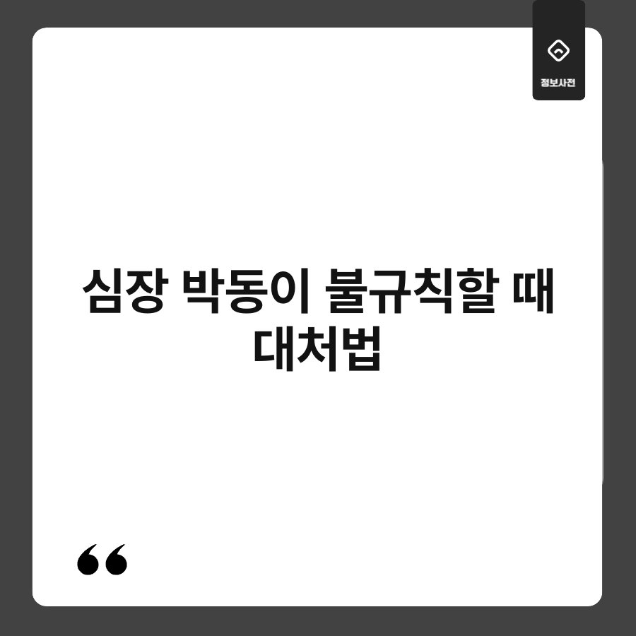 심장 박동이 불규칙할 때는 생활 습관을 개선하는 것이 중요합니다. 먼저, 규칙적인 운동을 통해 심장 건강을 증진시키세요. 매일 30분 정도의 유산소 운동이 효과적입니다.