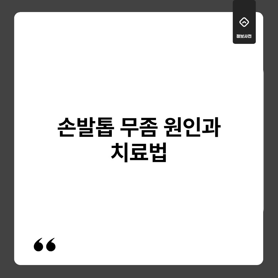 손발톱 무좀, 생각보다 많은 분들이 겪고 계신 문제입니다. 이럴 때, 무좀의 원인과 치료법을 제대로 아는 것이 중요하죠. 무좀은 손발톱에 불편함을 주고, 외관상으로도 신경 쓰이게 만들어요. 하지만 걱정하지 마세요! 이번 글에서 손발톱 무좀의 원인과 효과적인 치료법에 대해 자세히 알아보겠습니다. 함께 살펴보시죠!