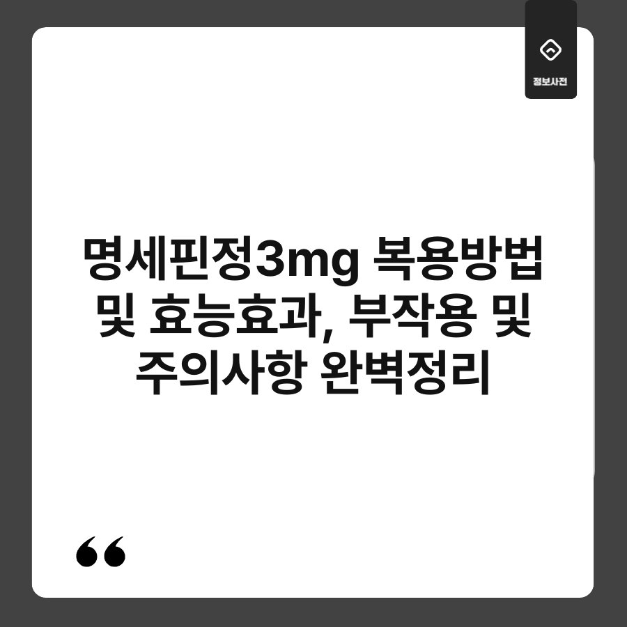 명세핀정 3mg, 이름만 들어도 생소하게 느껴지시죠? 하지만 이 약물은 다양한 효능과 효과로 많은 분들에게 도움을 주고 있습니다. 오늘은 명세핀정의 복용방법, 효능효과, 부작용 및 주의사항을 완벽하게 정리해보려고 합니다. 이 정보를 통해 여러분의 건강 관리에 조금이나마 도움이 되길 바랍니다. 지금부터 함께 알아보도록 해요!