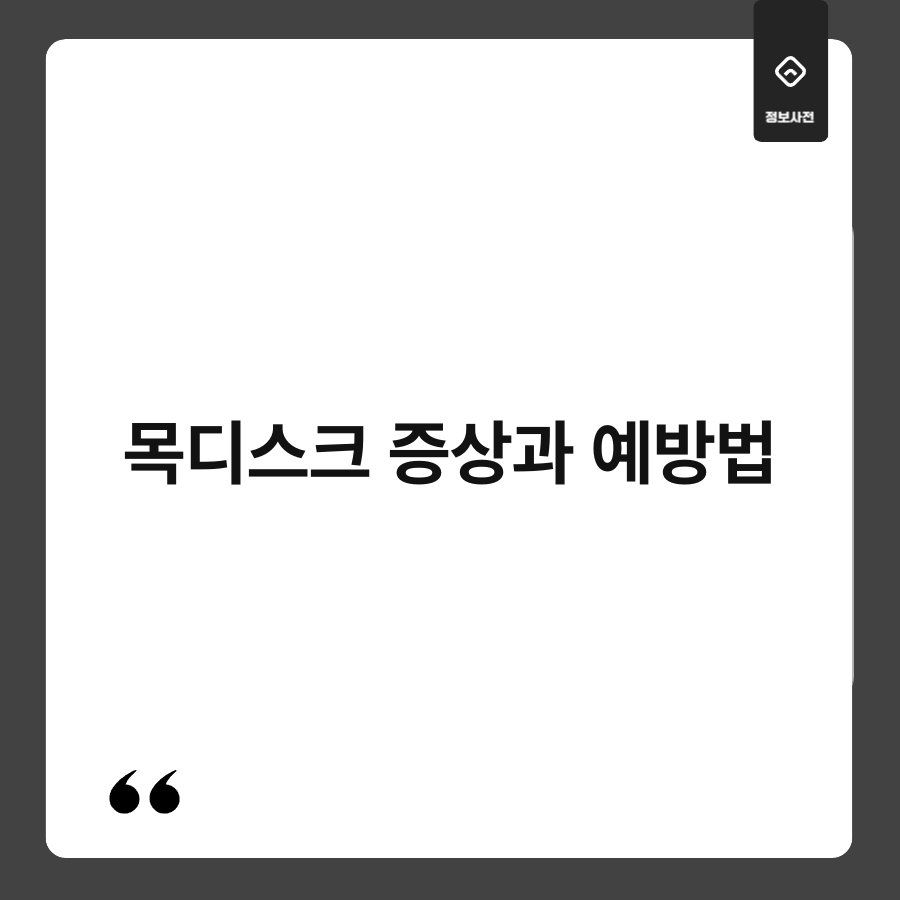 목디스크, 들어보신 적 있으신가요? 많은 분들이 목디스크 증상을 겪고 계십니다. 하지만 정확한 증상과 예방법을 아는 분은 드물죠. 오늘은 목디스크 증상과 그 예방법에 대해 자세히 알아보겠습니다. 함께 알아보면 도움이 될 거예요!